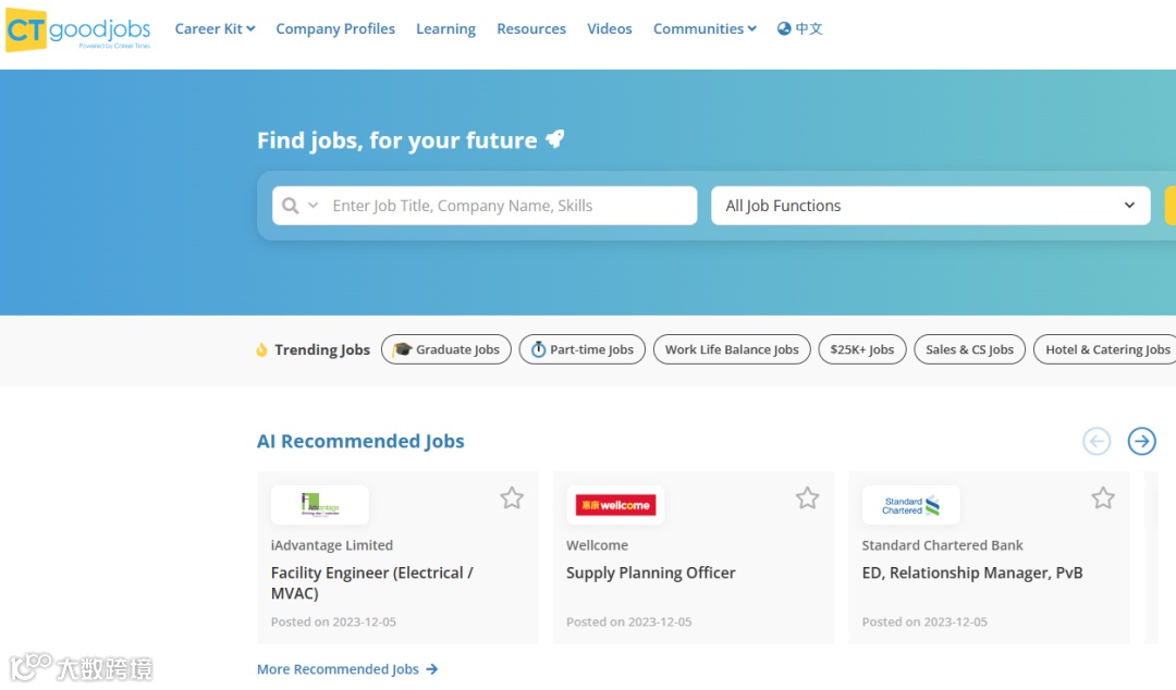 ctgoodjobs是香港最知名招聘网站之一,岗位包括全职、兼职和临时工作等不同类型。