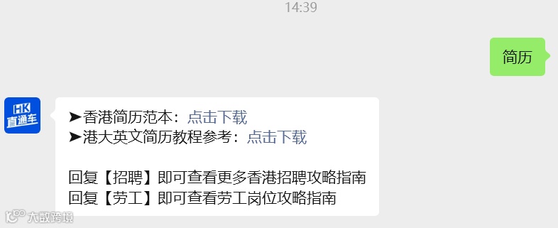 香港英文简历怎么写?可以在@香港直通车 公众号后台回复【简历】获取简历模版