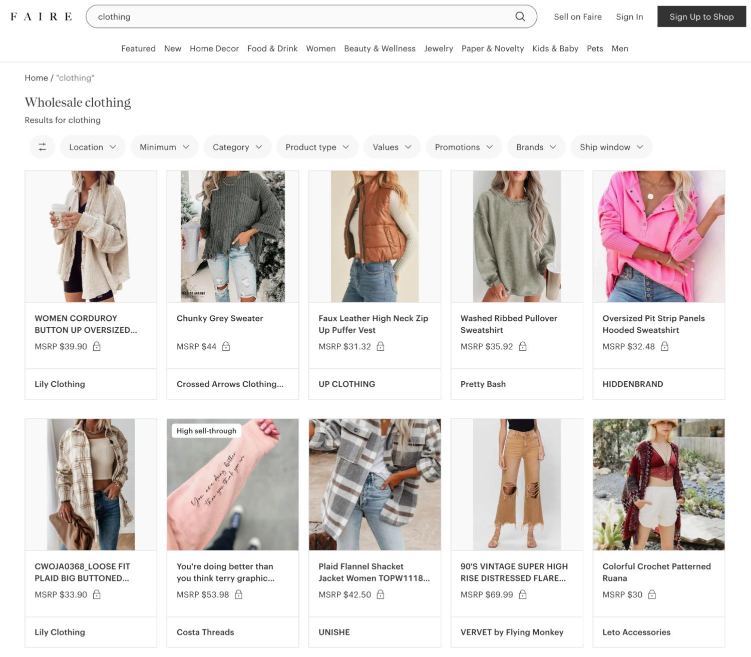 你可以在Faire上浏览来自数千个独立品牌的热门批发服装产品。