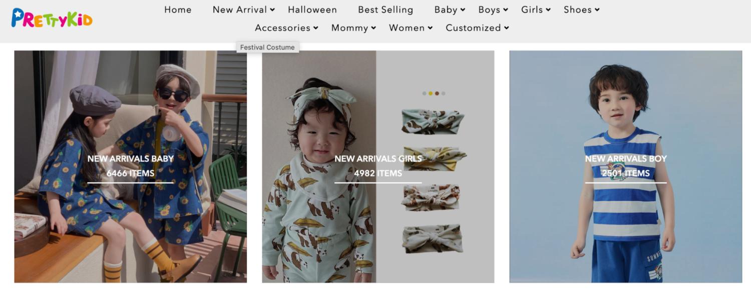PrettyKid专注于童装、孕妇装及新手妈妈装。它提供男童装、女童装和婴儿装,以及流行的季节性服装。你可以定制童装或使用其现有设计。PrettyKid还提供代发货服务。产品不同,最低的订单金额限制也不同。