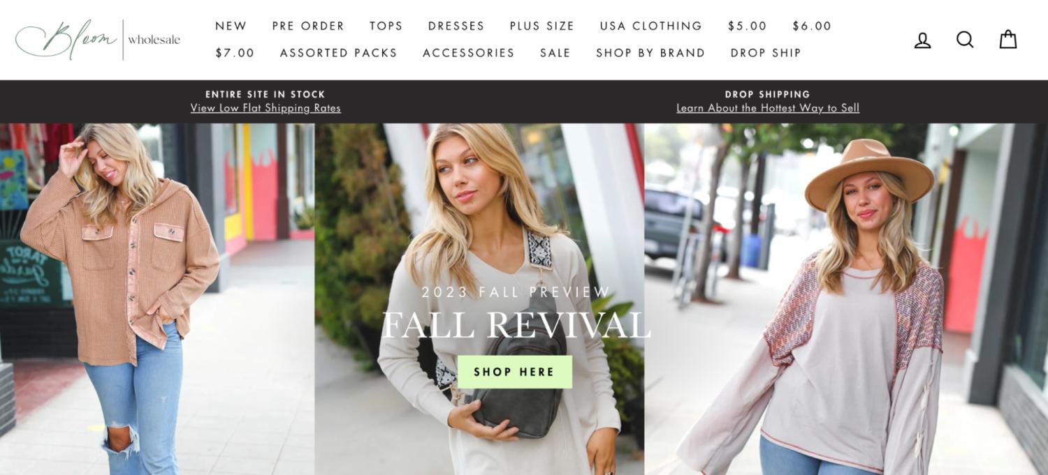 如果你需要批发女性服装,Bloom值得一看。它有常规码和加大码服装,以及一些配饰。Bloom位于洛杉矶时装区的中心,提供时尚单品,没有最低订购量的限制。Bloom还提供代发货服务,这项服务面向订阅者且名额有限。