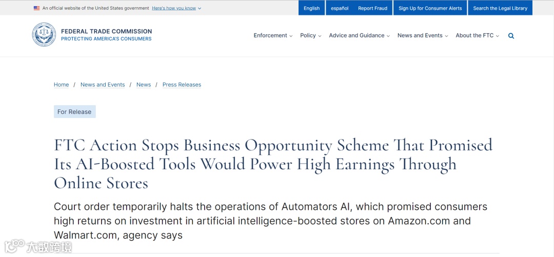 Automators AI进行了一系列针对亚马逊、沃尔玛新卖家的宣传,也有许多卖家就这么上套了。据美国联邦贸易委员会(FTC)发布的公告,卖家总共被骗了 2200多万美元