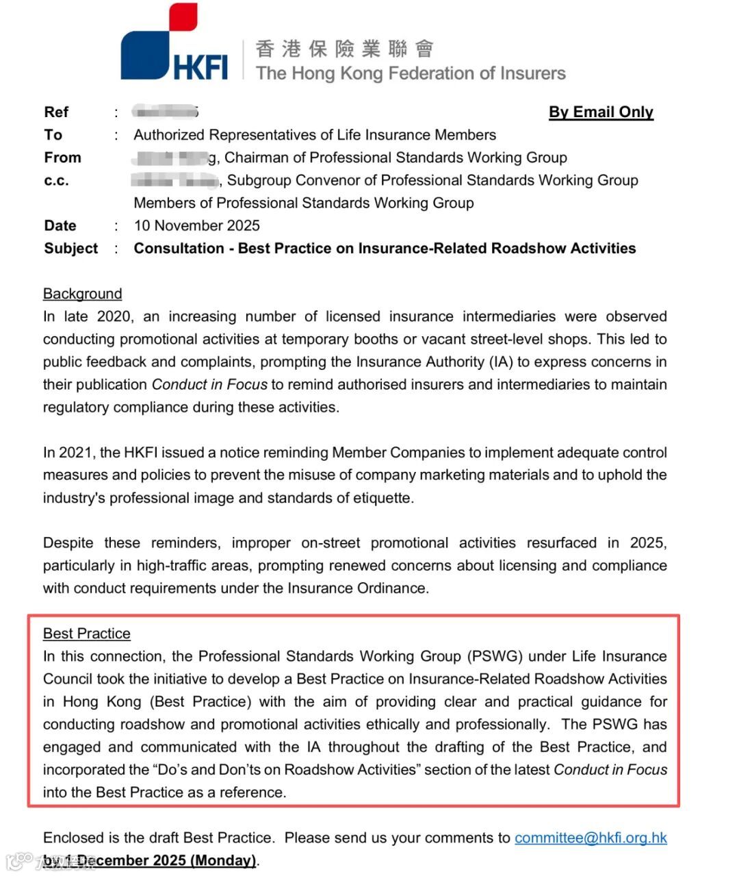本次由香港保险业联会发布的《最佳行为规范》,被普遍视为对香港保监局此前监管行动的进一步延伸和细化。该规范将于2026年1月1日起正式实施。