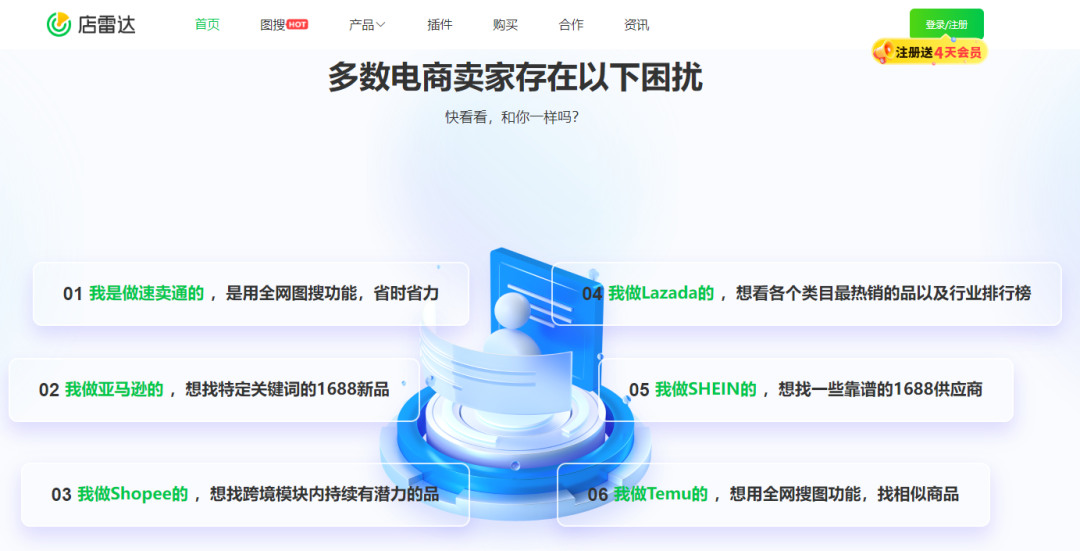 访问店雷达官网:https://www.dianleida.net/?c=WMYY88推荐码:WMYY88。注册免费领30天月度会员体验。接下来,我们直接进入实操环节: