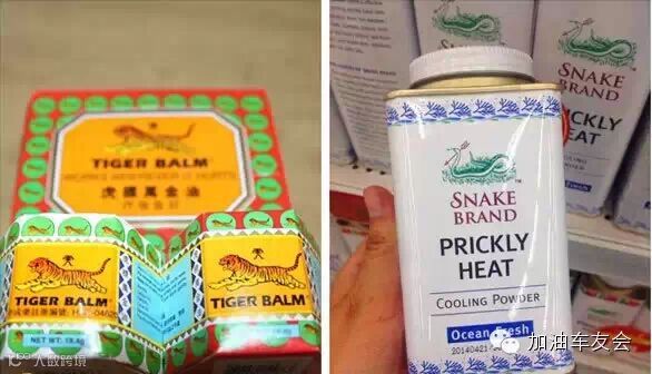 虎标牌的东西,有酸痛软膏涂抹肩膀的,还有万金油,另外就是蛇牌的爽身粉,家里有小朋友的一定要买。