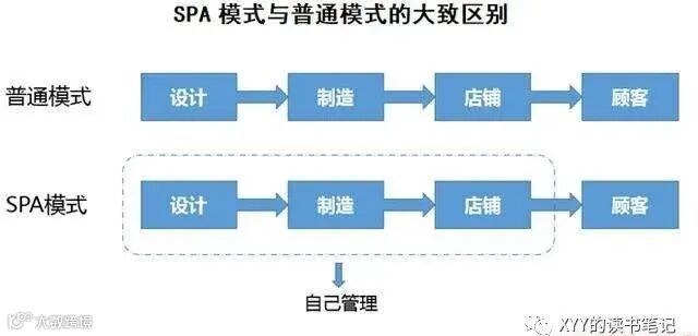 服装是”永远在变换款式的生鲜商品”。季节和时尚趋势共同主导服装行业,以至于消费者对于任何一款商品兴趣度最多可能只有一季度,消费者通常购买衣服时候至少未来1个月还能穿,由此,一般衣服正常售价销售周期是8周。服装公司经常用1年时间筹划和设计相应的商品,但最终商品的保鲜期只有两个月,当然,如果到了季末,还面对满屋子库存,那就实在悲剧。因此,SPA模式成为了顶级服装企业的必备,其核心就是打造从商品设计生产到零售终端的全产业链,使得企业能够最快速度获取市场信息,以最快速度进行调整,以一方面尽可能满足顾客需求(赚到最多钱),另一方面又避免出现大量多余库存(最大财务风险),这种模式起源于1987年GAP。