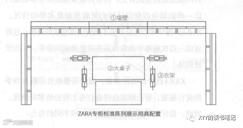Zara基于衣服搭配进行摆放。Zara的产品开发是从确定季节主题开始的(例如度假风),之后决定流行色(Zara很多流行商品只有1个最多2种颜色可选),最后再确定相应风格搭配。由此,Zara在店面核心产品摆放模式是基于时装搭配的,也就是在某个区域会给用户提供几种搭配的不同品类衣服选择。这主要是因为顾客来到Zara商店很多时候是无明确购物目的的(比如想来看看当季流行什么),而Zara店面布局核心是要让用户逛得开心,并不是让顾客购买所有衣服,而基于搭配的摆放模式让顾客能够很快联想到自己的衣柜,从而联想到这些衣服可以和自己已有的衣服如何搭配,从而下单购买。当然,具体来看,Zara的店面摆放有三种陈列模式:1.墙壁固定衣架,主要摆放当季流行款式;2.大桌子,主要展示业余时间休闲款;3.活动式衣架,是和季节需求的搭配基础件。