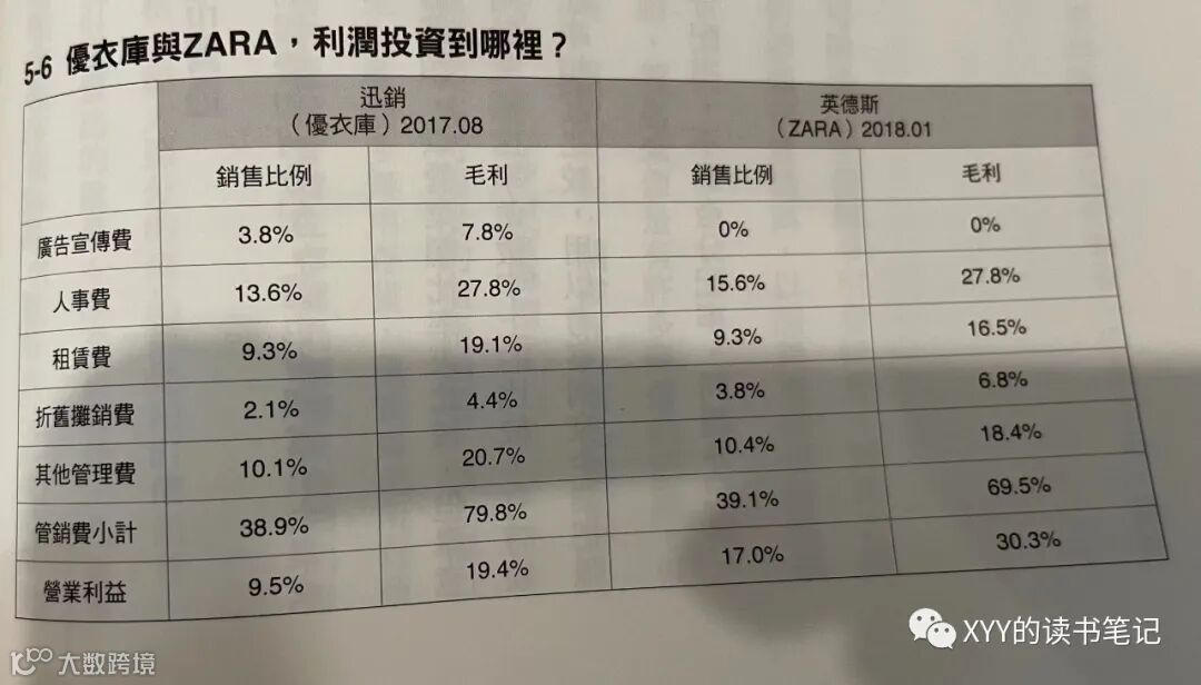 Zara从来不做广告营销。标榜流行趋势的Zara从不进行广告营销(据说营销费用率控制在0.3%),公司觉得广告带来是公司的利益而不是顾客(因为售价更高),所以还不如把投资放在提升供应链效率,降低售价或者提升品质上。当然,持续高效时尚新品推出本来就是一种天然流量吸引点,顾客会追着时尚持续走进Zara的店面,一般服装店顾客一年到店次数是3.5次,而Zara达到17次。可见,Zara的做法也深谙零售业的奥秘,直接给消费者让利,才是最直接的让利。当然纵观优衣库和Zara,前者是Push型营销,通过广告将消费者”推“到门店,而后者则是Pull型营销,用持续上新商品将顾客”拉“回门店。