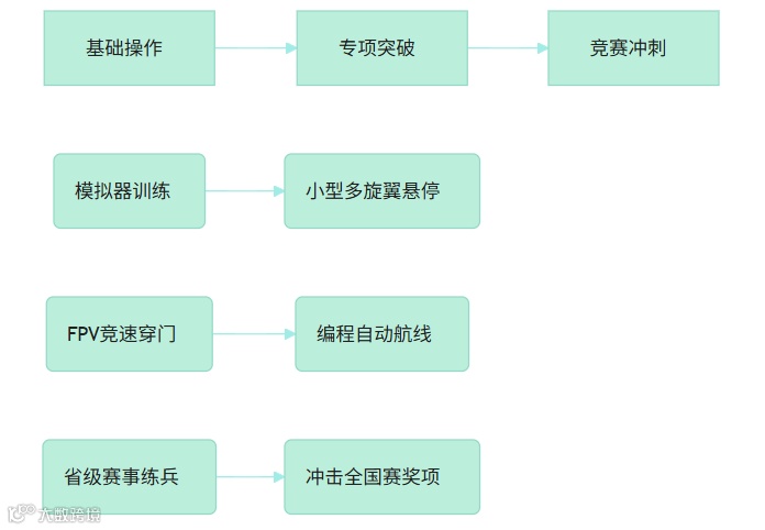 3.高一至高二:主攻全国青少年无人机大赛,冲刺一级运动员证书(备战高水平运动队)。