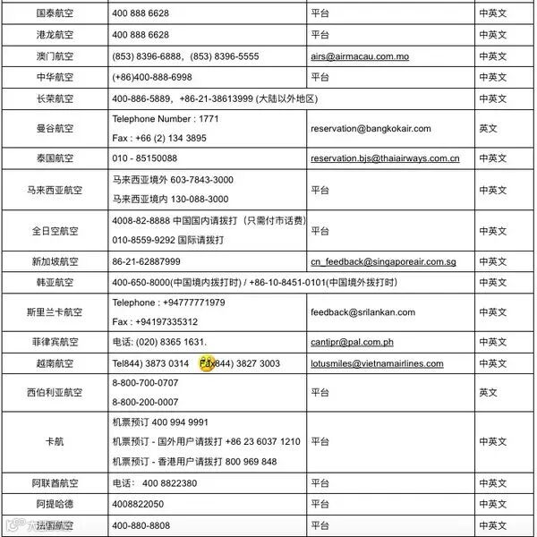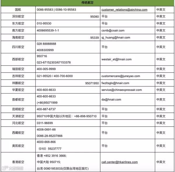 各航空公司联系方式汇总!电话/邮箱 (含传统航空联系方式)