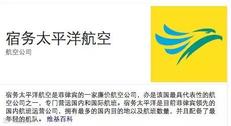 宿雾航空, 也叫宿雾太平洋航空 cebu pacific ,是一家菲律宾的廉价航空公司,总部在宿雾,标志是个可爱的小飞机。它主要经营菲律宾各个岛屿之间的航线,运营的多是小型客机,比较安全,飞行高度低,可以看到蓝色的海面和美丽的岛屿。