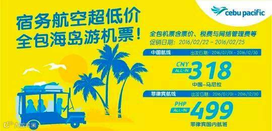国内至马尼拉MANILA的航线:从上海、广州、厦门、香港、澳门、台北、高雄等地,都有直飞航班。然后,从马尼拉可以中转到菲律宾国内的宿务CEBU等大部分地区,以及印尼(雅加达)、马来西亚(沙巴KK和吉隆坡)、泰国(曼谷)、越南(胡志明和河内)、新加坡、韩国(首尔)等亚洲国家。另外,作为廉价航空,和亚航一样,促销期也会爆出0-1价机票。