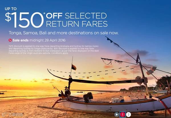 每天12:00-13:00(澳洲东岸时间为准)为减价时段,只要上维京航空网站上看到 “Happy Hour”广告,就有机票减价活动,约有3-4条指定航线会特价,但票价有出发日期及时间的限制。