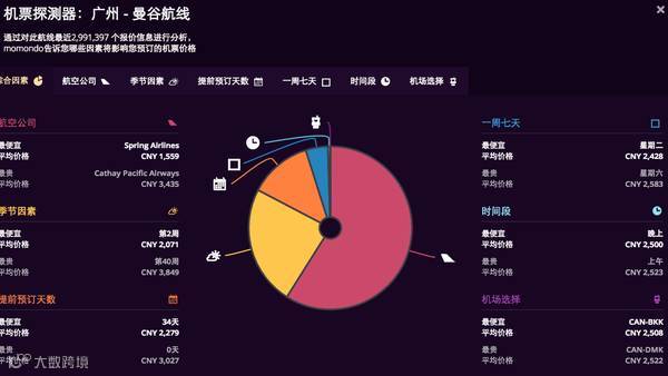 momondo比较亮点的功能就是PC端的机票探测器,可以使用来帮助分析如何买到更便宜的机票。包括时间段、航空公司、提前预订天数等,适合喜欢提前很久做旅行计划的人。