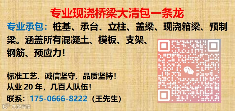 15、温州一高速公路项目找通涵专业劳务分包,有实力的队伍可以联系,提篮子或者没有实力非专业的不要联系。15273077789李总