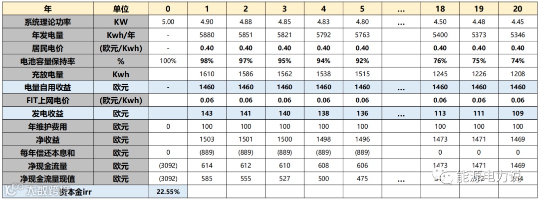 1)自用电量:每天10kwh,每年约3650kwh,考虑德国居民电价为0.4欧元/kwh,自用电量收益逐年递增;
