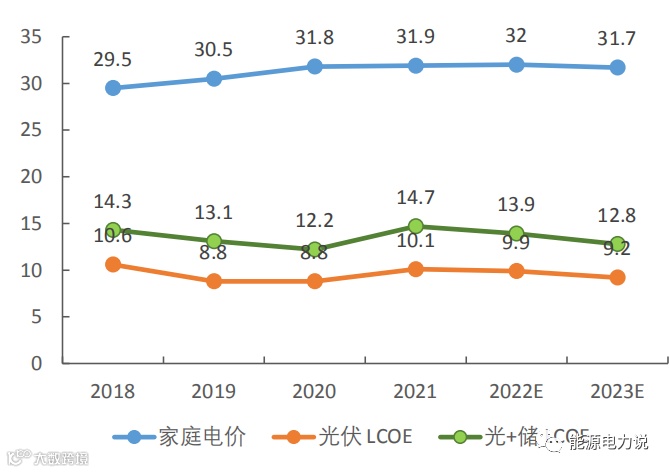 光储LCOE与家庭用电成本差距拉大,户用光储经济性凸显。