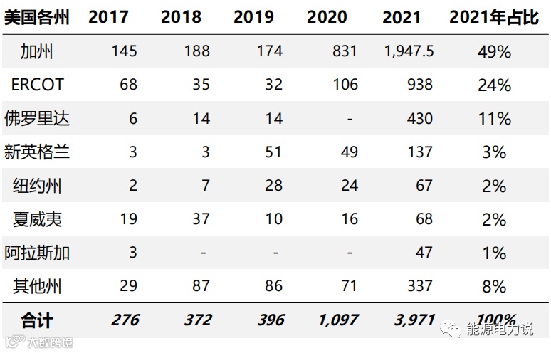 美国为户用储能第二大市场,加州为户储装机的主力贡献者。
