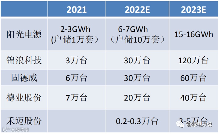 2022年年初以来,户储需求旺盛,国产逆变器厂商出货持续高增,我们预计2022年国产逆变器厂商出货实现翻倍以上增长,2022年我们预计阳光出货6-7GWh,实现翻倍增长,其中户储有望从2021年1万套增至10万套;锦浪出货30万台,实现翻9-10倍增长;固德威出货30万台,实现翻4-5倍增长,德业出货20万台,实现翻2-3倍增长。