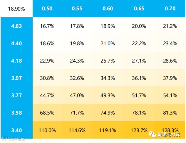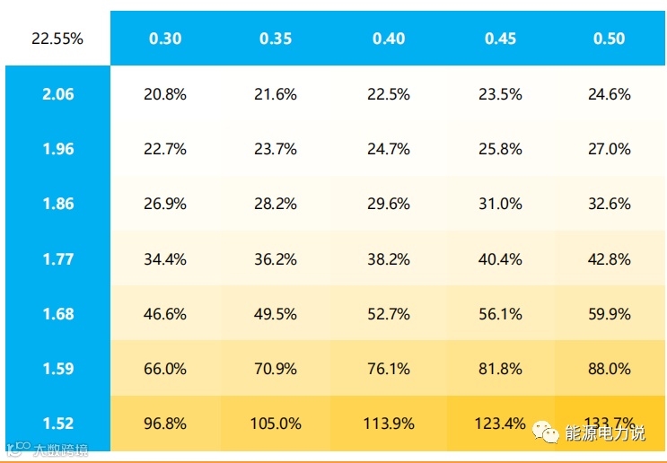 以德国为例,假设规模5KW,配储50%*2h,户用光伏+储能成本为2.06欧元/W,以0.4欧元/KWh零售电价以及0.06欧元/KWh上网电价测算后IRR达22.55%。