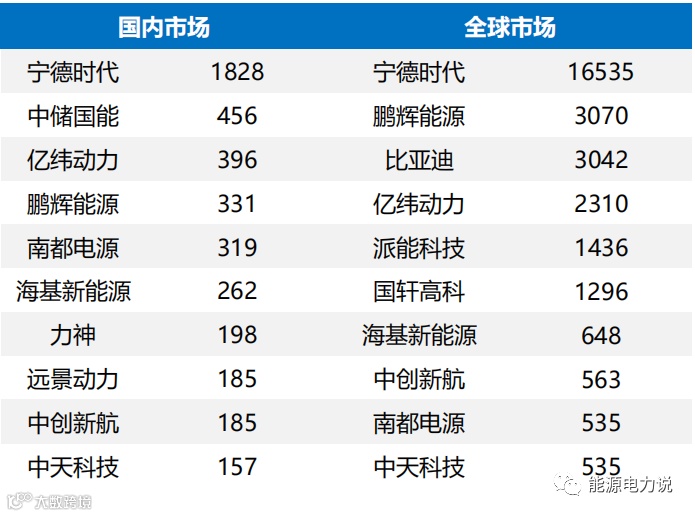 全球储能电芯中国厂商出货领先,宁德时代出货量全球第一。
