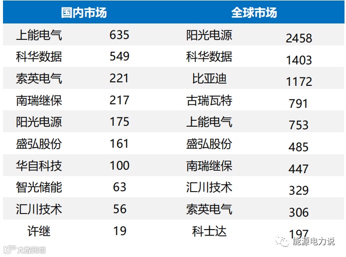 2021年国内及全球市场储能逆变器出货情况(MW)