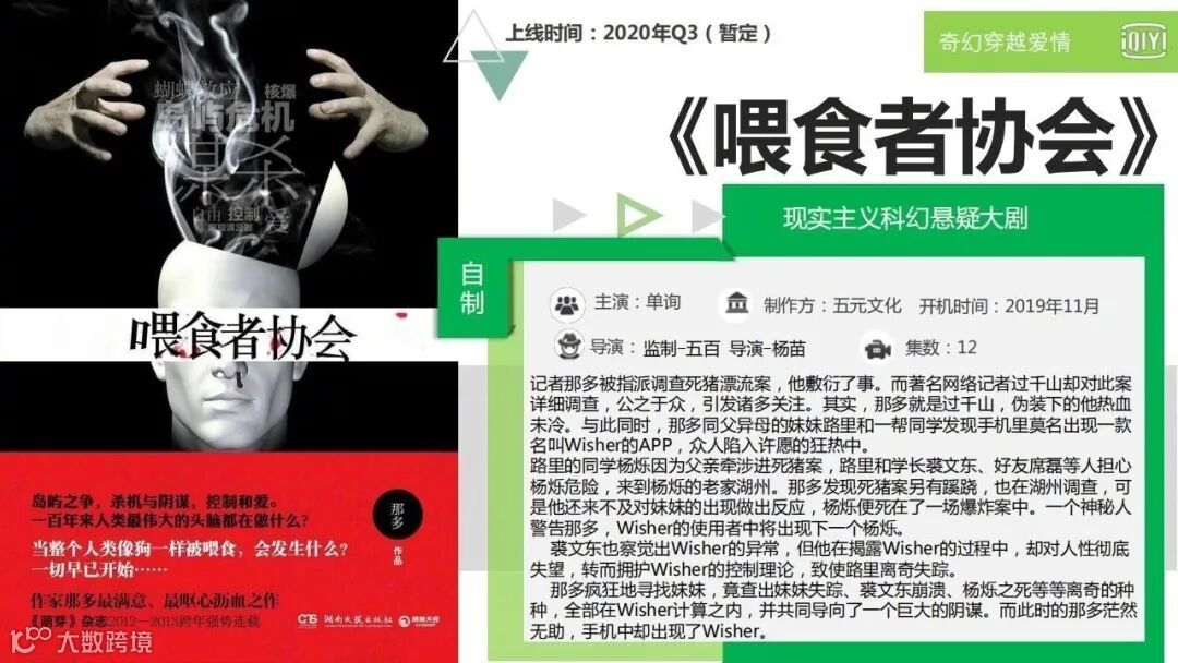 5月14日举行的爱奇艺悦享会上,爱奇艺高级副总裁陈潇透露,“迷雾剧场”将在Q4(第四季度)推出精品短剧集《谁是凶手》《淘金》《致命愿望》《八角亭谜雾》《迷途》《暗夜行者》《猎罪图鉴》