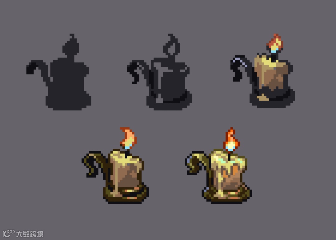 4. 像素艺术教程:蜡烛(Twi/X:PixelArtJourney)。