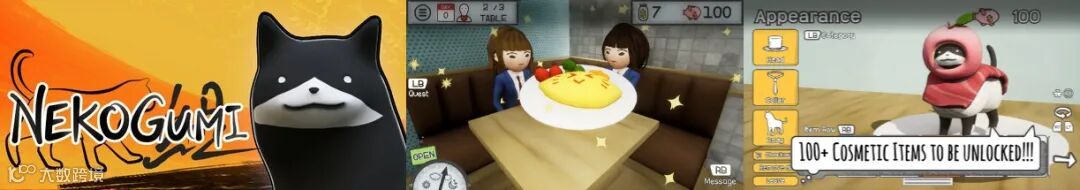 关键字:休闲、模拟、猫;一款第三人称冒险游戏,玩家将与热爱角色扮演的猫老大布鲁斯一起改造猫咪咖啡馆,赚取金币、扩充衣柜、对付恼人的老鼠,享受充满可爱与活力的冒险世界。