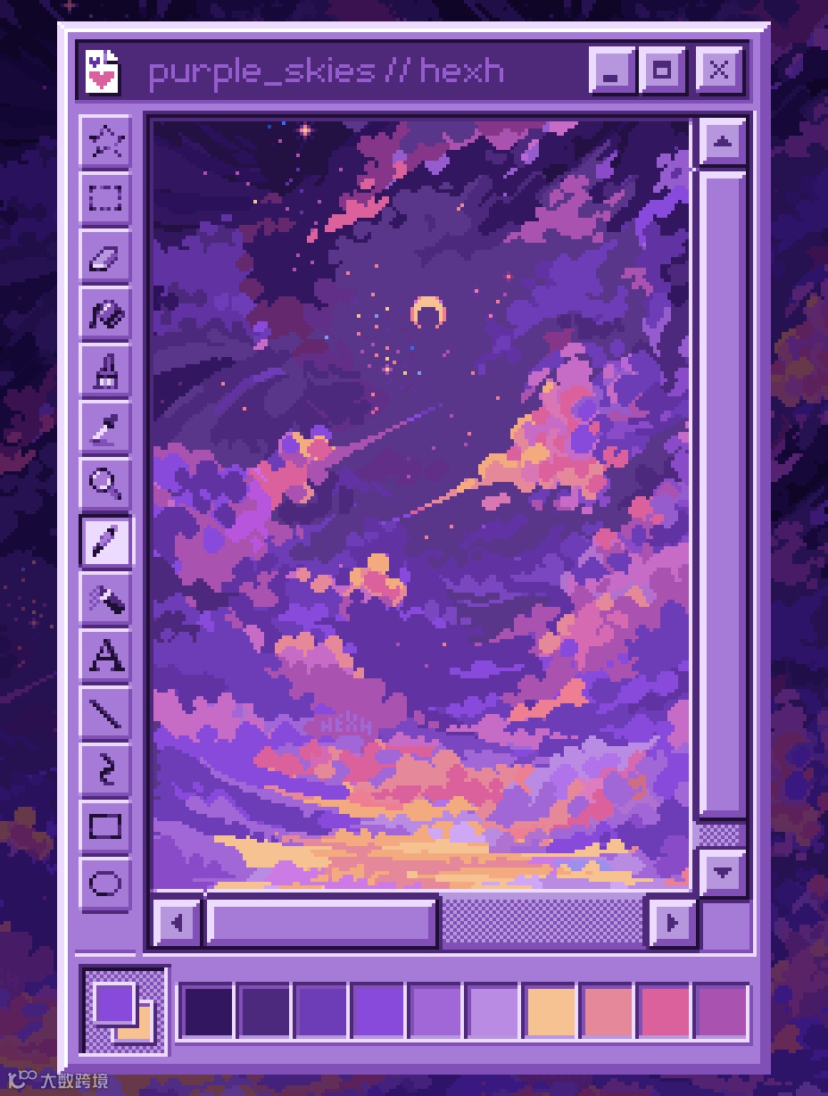 7. 像素艺术欣赏:紫色天空(Twi/X:hexh__)