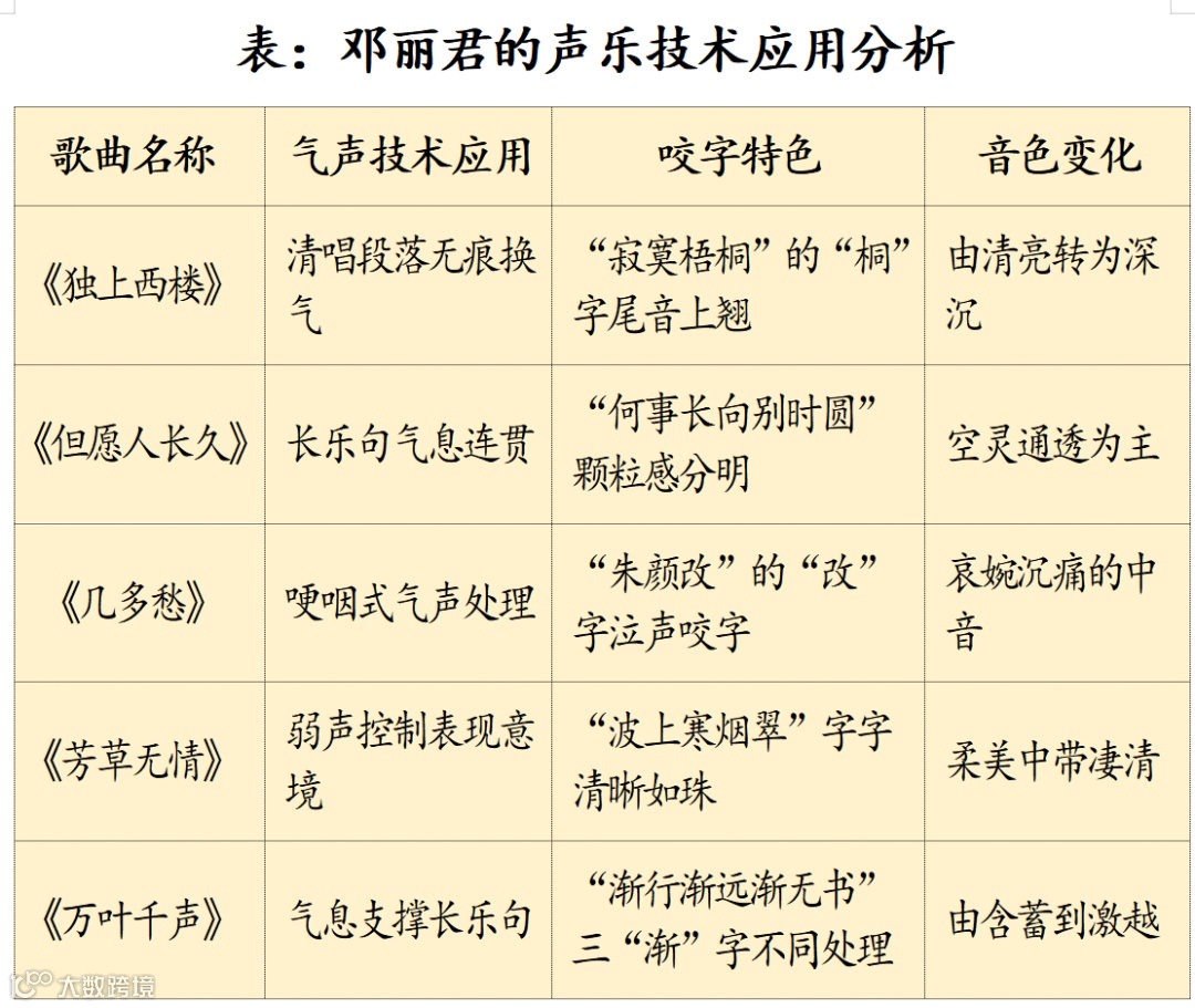 演唱高度:邓丽君融合传统戏曲与流行唱腔,如《几多愁》录制16遍才达“哀而不伤”效果;