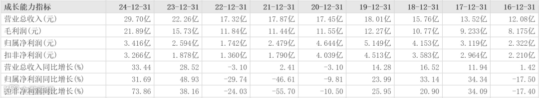 至2024年,丸美生物营收29.70亿元,同比增速达到33.44%;净利润达到3.42亿元,同比增速同样超过30%。今年,丸美生物将稳步迈入“30亿俱乐部”。