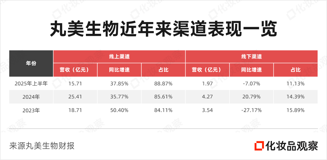 线下渠道虽整体呈下滑趋势,但结构优化成效明显。据丸美生物今年上半年的财报披露,在线下渠道拓展方面,丸美品牌继续发展新型美妆集合店,并开出了多家丸美科技美肤馆,在单品牌店模式上做了有益探索;恋火入驻的三福百货、乐沙儿等也有不错表现。