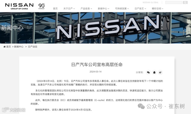12. 关口勋将担任东风日产乘用车公司总经理