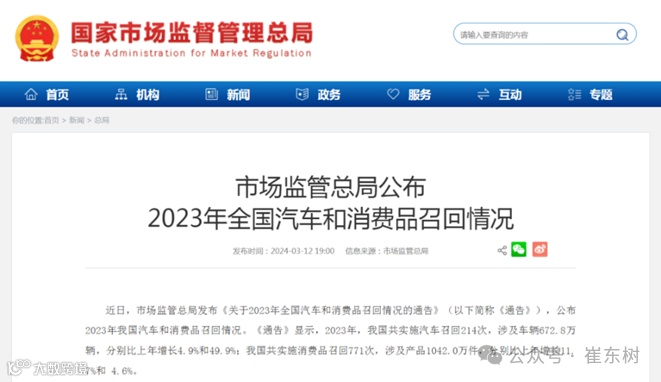 5. 国家市场监管总局:汽车召回便民服务专栏上线