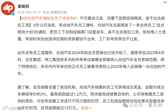 15. 合创被曝强制全员卖车