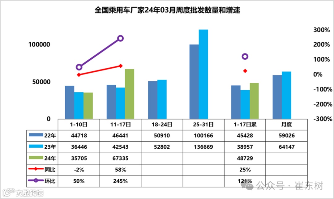 3月第2周批发日均6.7万台,同比去年2月增58%,环比上月同期增245%。