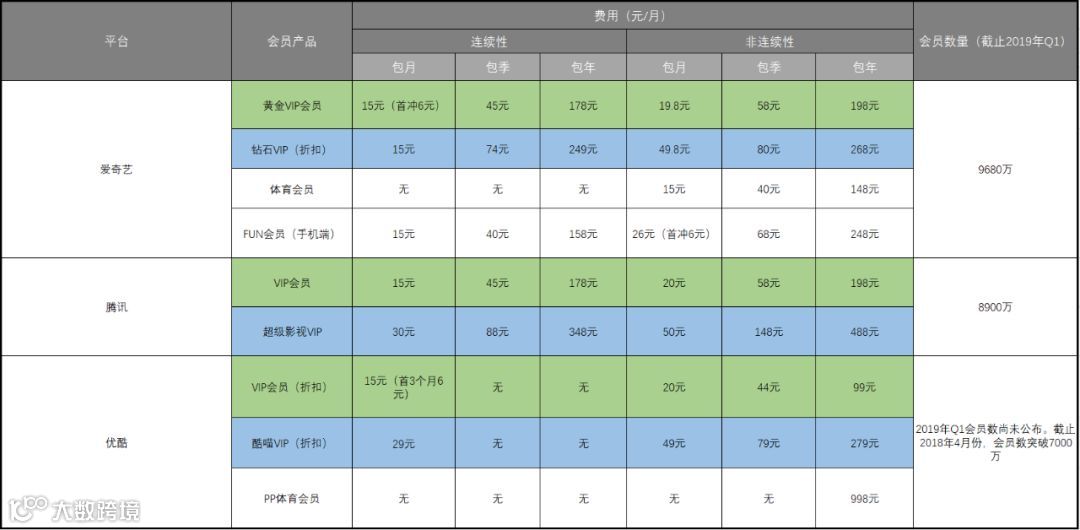 爱奇艺作为国内最早推行会员制度的视频网站,会员服务收入在2018年已超过在线广告服务收入成为收入顶梁柱,并且已经连续三个季度成为爱奇艺第一大收入来源。据爱奇艺最新发布的财报显示,2019年第一季度会员服务收入创历史新高,收入为34亿元,较2018年同期增长64%。在会员数量方面,截止2019年第一季度,会员订阅人数达到9680万人,同比增长58%。爱奇艺创始人、CEO龚宇在接受采访时曾表示,会员业务天花板更高,增长时间更久,已经支撑起爱奇艺营收半壁江山。他还预计,2019年爱奇艺新增会员数和去年数据接近,在3600万左右。