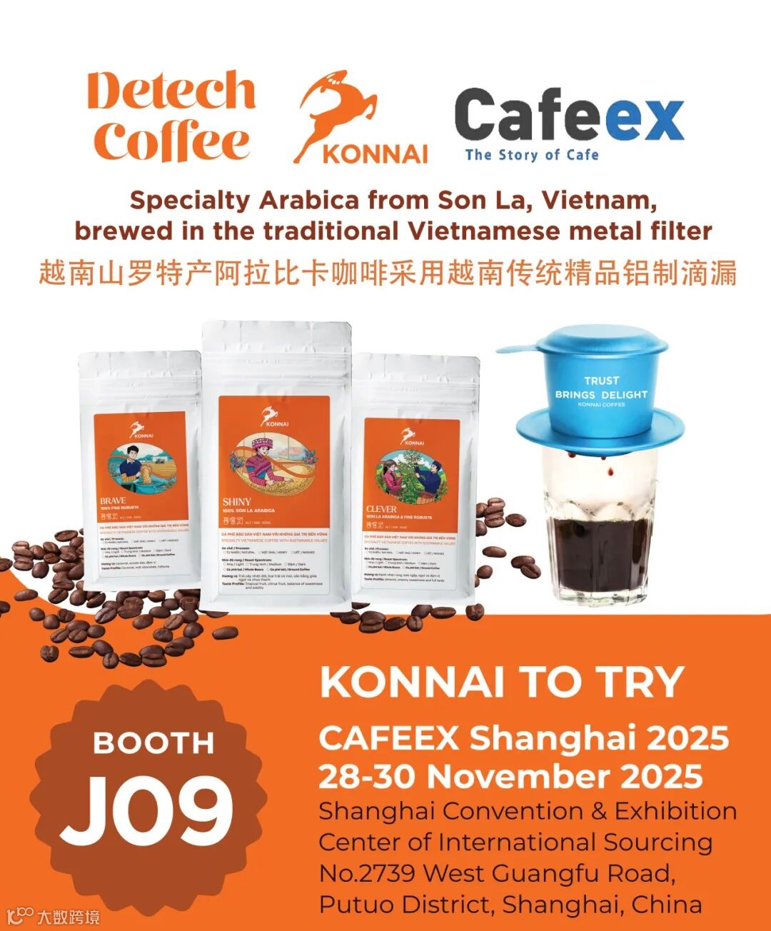 这次CAFEEX上海展J09展位,我们Detech Coffee的品牌Konnai Coffee将展示从农场到杯子的整个旅程。