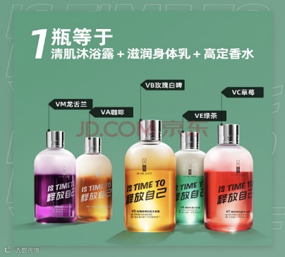 品牌定位:美妆方向的个护+成分生物技术+缓解情绪社交。凭借着高颜值和高性价比获得了越来越多消费者的关注和喜爱。品牌包含的品类方向有,沐浴露、身体乳、磨砂膏、沐浴油、身体精油、洗发皂、护发素、洁面等产品。