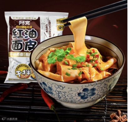 非油炸方便面皮,配上优质原料,精心炼制而成的红油;面片韧性十足,口感极佳,颜色红润亮丽,香气扑鼻;芝麻粒粒香酥;麻辣鲜香。酸爽可口,川味十足,百吃不厌。