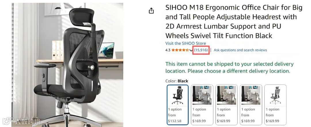 SIHOO的经典款M18人体工学椅在亚马逊上仅售132.58美元