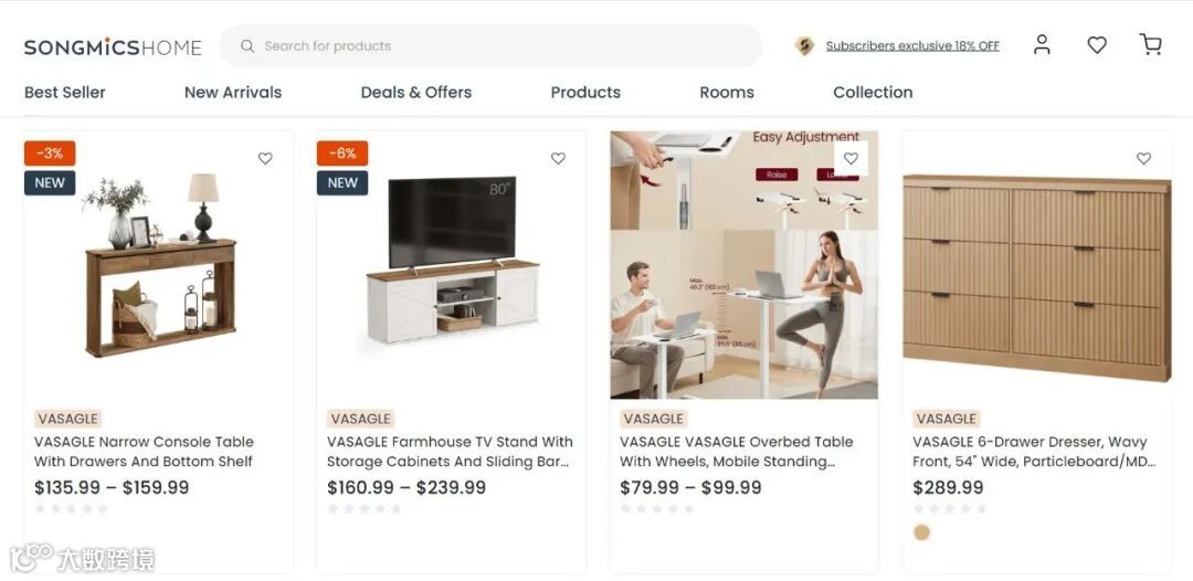 SONGMICS品牌独立站上架了多款高性价比的家具新品