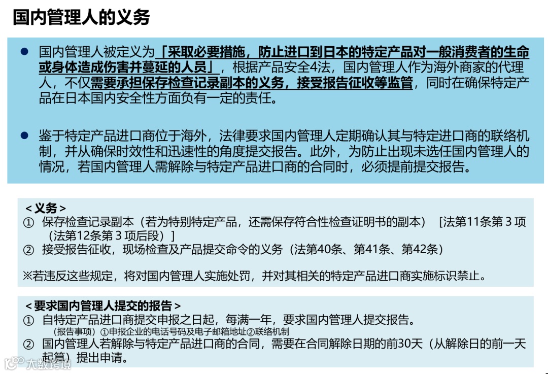 新规核心要求:通过电商平台等直接向日本消费者销售特定产品的海外经营者,必须指定一名在日本的“国内管理人”(俗称“日代”),并履行一系列义务。未合规卖家将面临商品禁售、罚款甚至刑事责任。