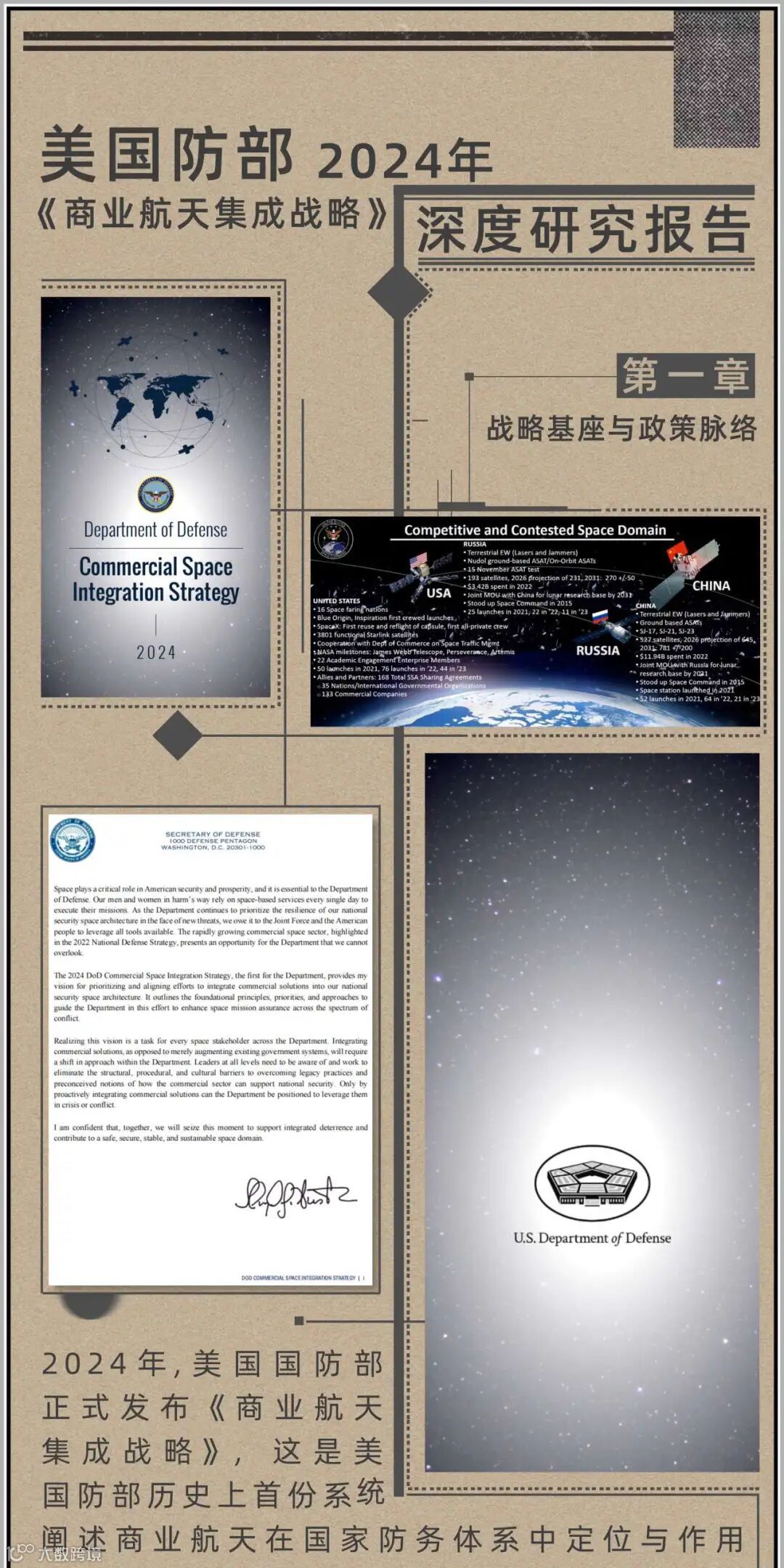 2024年4月2日,美国防部正式发布《商业航天集成战略》,这是美国防部历史上首份专门针对商业航天集成的战略文件。该战略的出台标志着美国国防太空政策进入了一个全新的发展阶段,其背后蕴含着深刻的时代背景和战略考量。