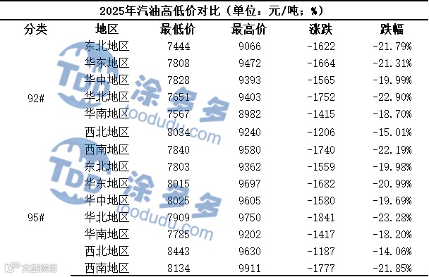 整体来看2025年,原油方面震荡波动,需求疲软难以改善、供应端出货压力仍是影响国内汽油市场行情变化的主要因素。