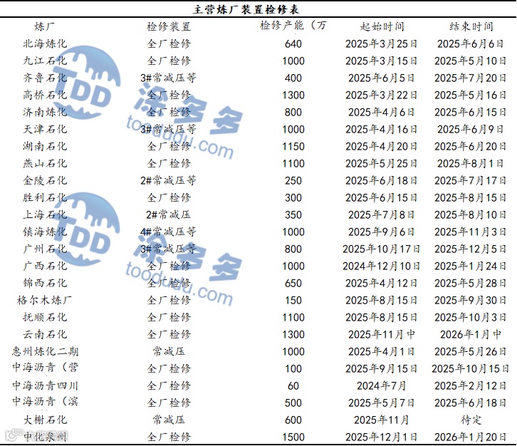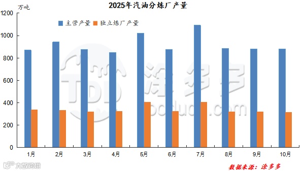 截至10月底,2025年主营单位汽油产量累计9170.61万吨,独立炼厂产量累计3405.71万吨。
