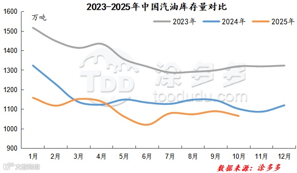 第三季度汽油市场行情持续走弱。1、原油成本方面,国际油价在OPEC+稳步增产与地缘风险博弈中震荡下行,价格重心较前期明显回落,导致国内成品油零售限价整体下调,对汽油批发市场的成本支撑持续减弱。2、供应方面来看,随着集中检修期结束,炼厂开工负荷提升,主营单位维持“高产高销”策略,市场供应压力增加。但在新能源替代趋势下,炼厂普遍调低汽油收率,产量同比仍有所下滑。库存方面,7月因消费不及预期出现累积,8月在暑期出行支撑下小幅去化,9月消费回落叠加供应高位,库存再度显著累积。3、需求方面,尽管暑期出行人数增多,但汽油实际消费弱于预期。新能源汽车普及与公共出行发展对传统汽油消费形成持续替代;暑期结束后长途出行减少,9月需求明显回落。尽管月末有国庆备货短暂提振,整体仍显疲软。4、从政策方面来看,三季度成品油零售限价共经历“1涨、2跌、4搁浅”,累计下调75元/吨。新《成品油流通办法》实施后,贸易商操作谨慎,叠加原油下行与降价预期,市场“买涨不买跌”心态加剧。主营单位为缓解销售压力,多通过优惠促销出货,汽油批发价格虽具一定抗跌性,但整体仍呈弱势下行格局。