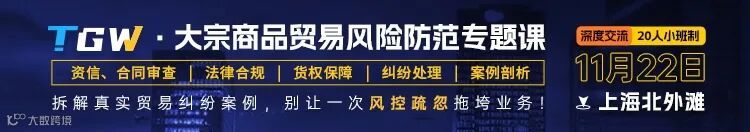 大宗商品企业风险管理研修班课程系列之一:贸易合规风险防范。内容含【资信、合同审查、法律合规、货权保障、纠纷处理、案例剖析】,11月22日上海,20个名额,招满即止。