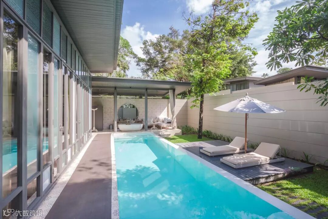 你看这梯田式的泳池,白色南洋风建筑里无缝衔接现代风设计,和比他贵了三倍的嘉佩乐极为相似。